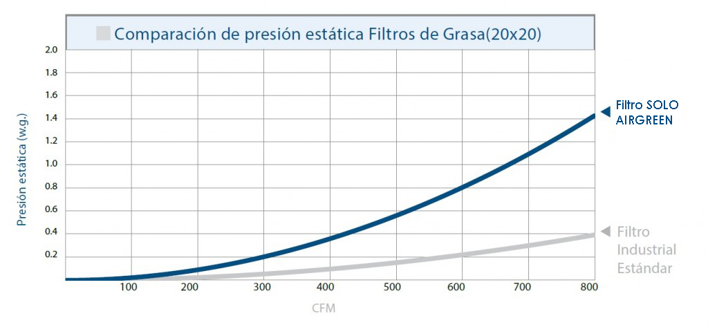 Ayudando a reducir la acumulación de grasa tanto en ductos de extracción como en el interior de la campana extractora. Nuestra linea de filtros de alta eficiencia, pueden extraer más del 90% de grasa por encima de siete micras de tamaño.